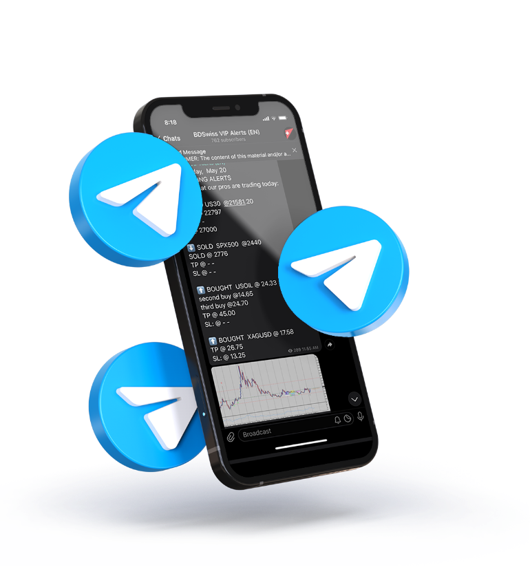 Il servizio di notifiche di trading di BDSwiss ti permette di conoscere il punto di vista di analisti professionisti sui principali asset per valutare meglio le tue operazioni. Con le nostre notifiche giornaliere gratuite non dovrai studiare grafici complessi o leggere analisi complicate, perché ti indicheremo la possibile direzione di mercato in termini di acquisto o vendita, oltre ai livelli di ingresso e stop.